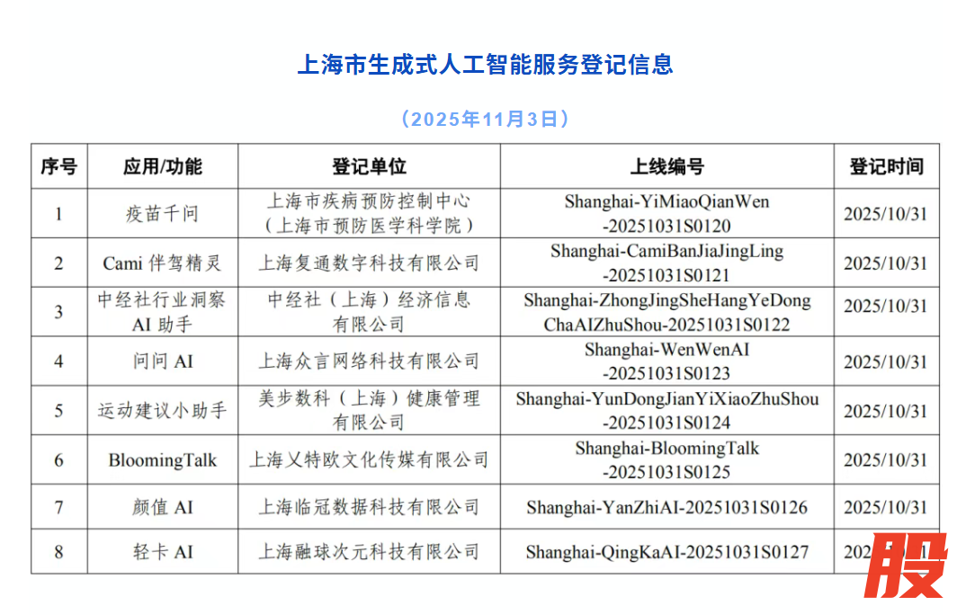 上海新增8款已完成登记的生成式人工智能服务上海新增8款已完成登记的生成式人工智能服务